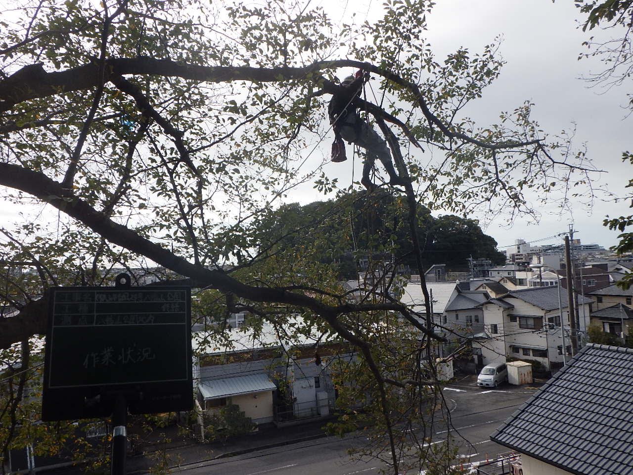 - クレーンや高所作業車が入れない場所でのロープ技術(ツリークライミング・リギング技術)による分割伐採